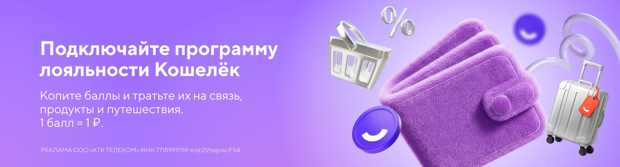 - Подключите тариф с мобильным и домашним интернетом из линейки «Всё в одном» — получите на баланс Кошелька 300 баллов.